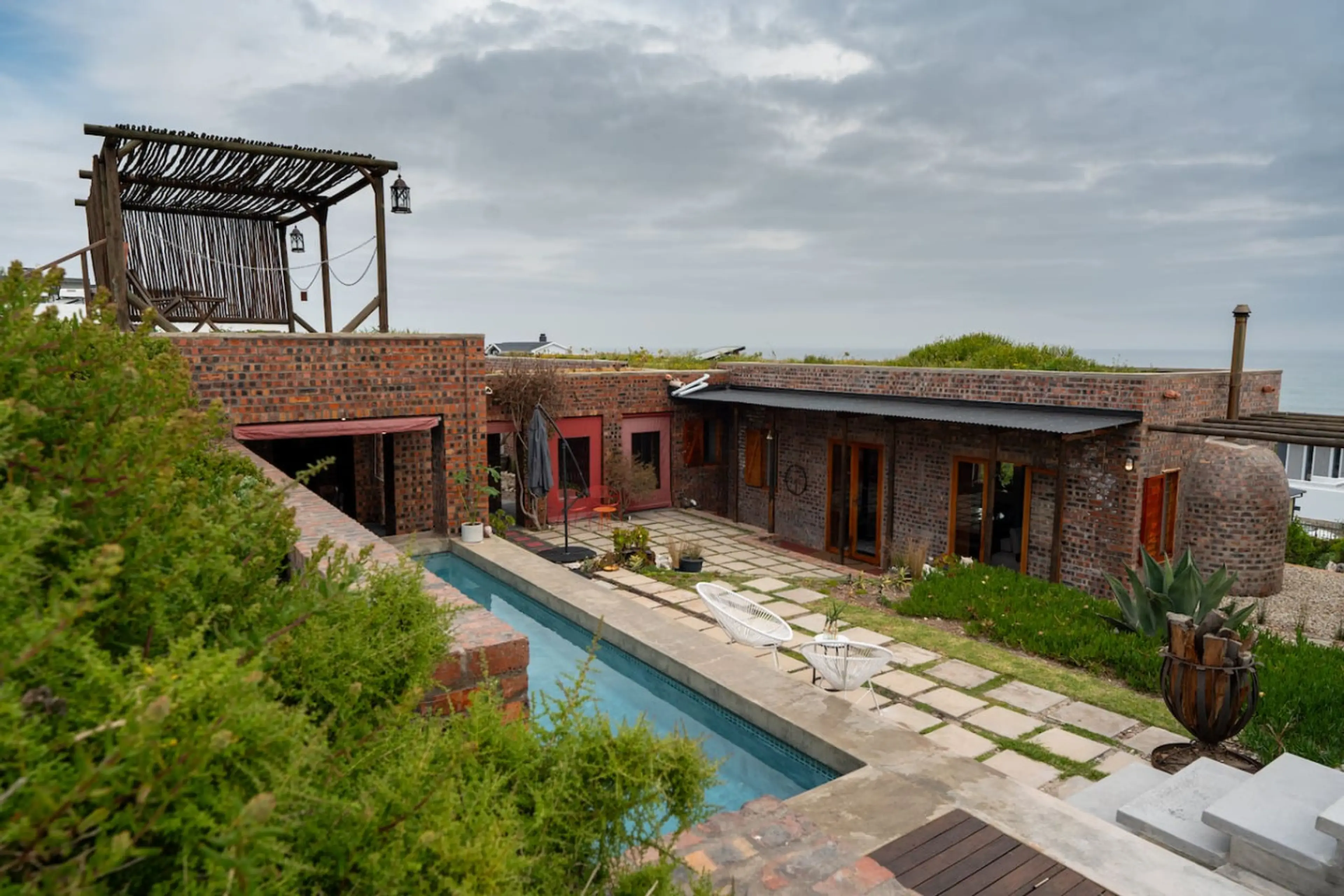 Situated 45 Minutes from Cape Town in the scenic Town of Yzerfontein in the Swartland wine country on the beautiful West coast. This unique 3 Bedroom House (with pool) is 500 metres from the ocean with uninterrupted views and lush greenbelt, rooftop gardens and an outside shower. Our walls breathe...